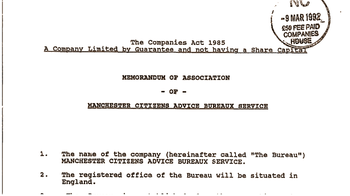 On 13th March 1992, Citizens Advice Manchester became an incorporated company, “providing a free, confidential and impartial service of advice and counsel for the people of Manchester.”